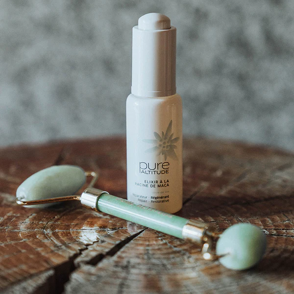 Het Macawortelelixer (volledige grootte – 30ml): een 100% natuurlijke olie, met macawortel, die een doffe en vermoeide teint weer maximaal laat stralen.