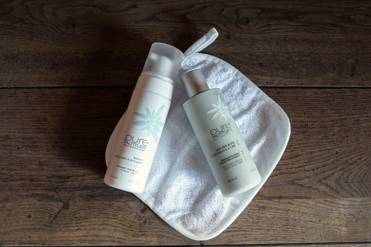 Melk van de alpenweiden met Edelweiss & Arnica: Een zachte en romige melk met gastronomische tonen van haver en honing, die alle huidtypes, zelfs de meest gevoelige, op milde wijze reinigt en make-up verwijdert.